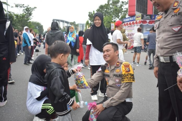 Pekanbaru (Nadariau.com) – Meriahkan akhir pekan di area car free day Satlantas Polresta Pekanbaru gelar senam zumba bersama masyarakat pengunjung car free day, Minggu (11/02/2024).
