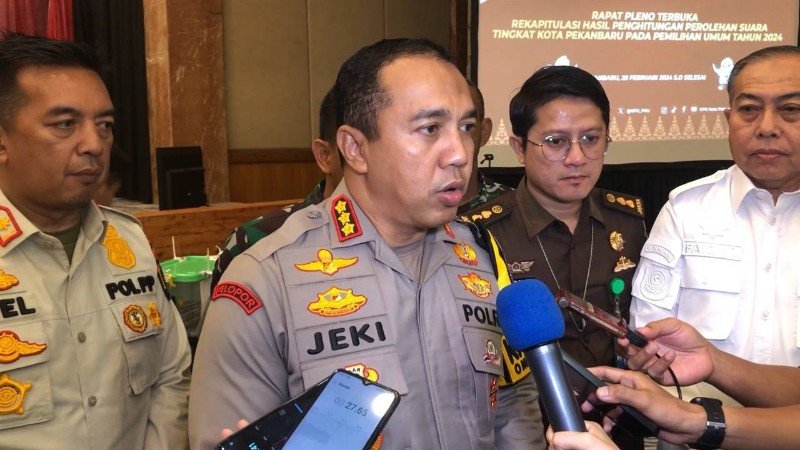 “Kami sudah menerjunkan sedikitnya 490 personel gabungan TNI, Polri serta Satpol PP untuk pengamanan. Hal ini kita lakukan agar kegiatan rapat pleno terbuka rekapitulasi penghitungan suara Pemilu 2024 di Kota Pekanbaru berlangsung aman dan lancar,” kata Kombes Jeki.