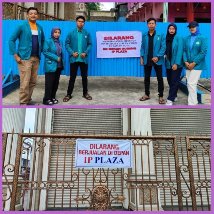 Tepatnya pada pukul 11:45 mahasiswa diketuai oleh M firdaus dan ayatullah M faisal mendatangi IP PLAZA untuk memasang spanduk yang bertuliskan dilarang menghalangi atau menutup pintu masuk jalanan umum pintu masuk ke taman kota.