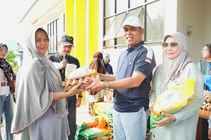 Pasar murah ini di awali yang di awali dengan senam sehat bersama Emak-emak turut dihadiri Pj Ketua TP PKK Hj Katerina Susanti Herman.