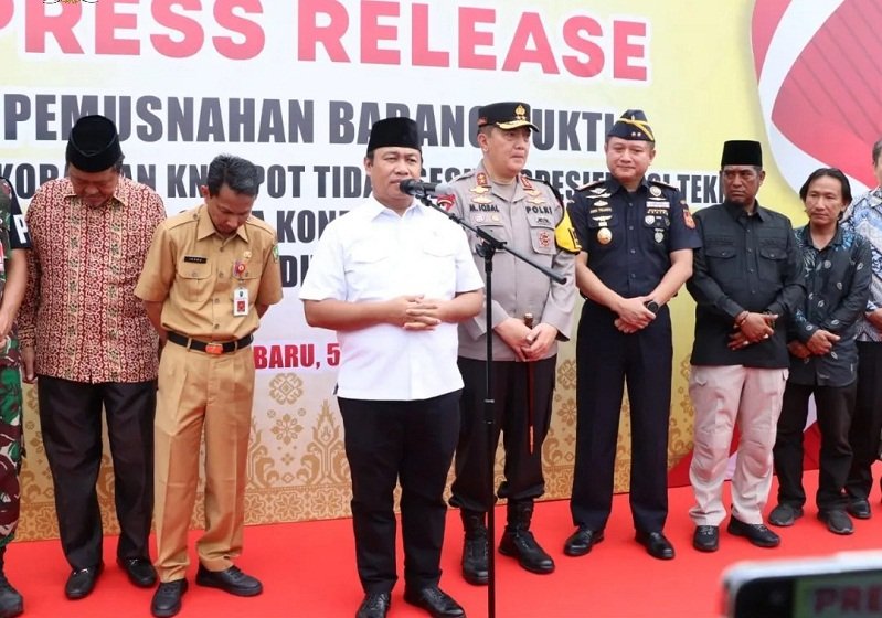 Pekanbaru (Nadariau.com) – Jelang Bulan Suci Ramadan1445 Hijriah Tahun 2024, Ketua DPRD Provinsi Riau Yulisman, hadiri pemusnahan barang cipta kondisi, di Lapangan Mapolda Riau, Selasa (5/3/2024).