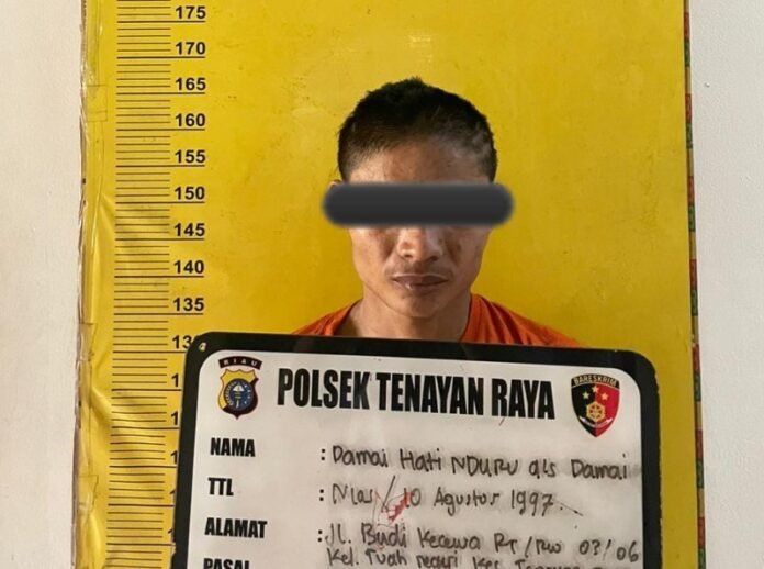 Kapolsek Tenayan Raya, Kompol Oka M Syahrial saat dikonfirmasi wartawan melalui Kanit Reskrim, IPTU Dodi Vivino mengatakan, pelaku berhasil diamankan saat sedang bersembunyi di sebuah bedeng tempat pembuatan batu bata yang terletak di Jalan Budi Luhur, Kelurahan Tuah Negeri, Kecamatan Tenayan Raya, Kota Pekanbaru.