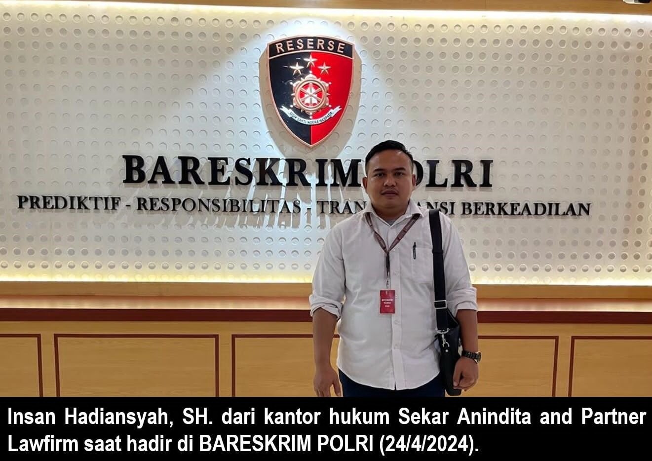Jakarta, Nadariau Com – Gebrakan yang dilakukan Menteri ATR/BPN Agus Harimurti Yudhoyono berkeliling Indonesia dalam upaya memberantas mafia tanah menuai apresiasi dari berbagai kalangan. Tak terkecuali dari pihak kuasa hukum perkara ganti rugi tanah RSPON yaitu Insan Hadiansyah, SH, dari kantor hukum Sekar Anindita and Partner Lawfirm yang dijumpai di BARESKRIM POLRI, Rabu, 24 April 2024.