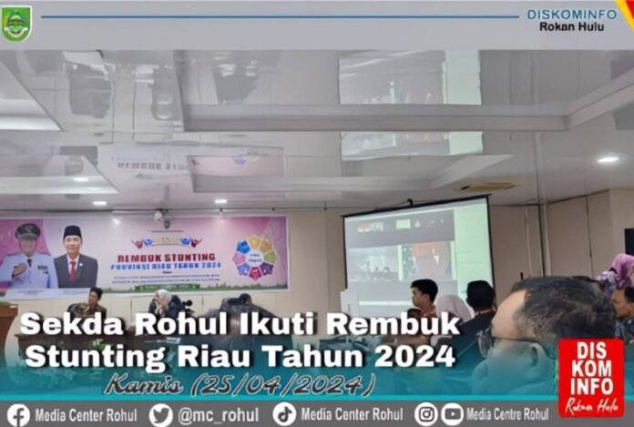 Rohul (Nadariau.com) – Bupati Rokan Hulu (Rohul) diwakili oleh Sekretaris Daerah (Sekda) Rohul, Muhammad Zaki S.STP, M.Si, mengikuti kegiatan rembuk stunting provinsi Riau tahun 2024.