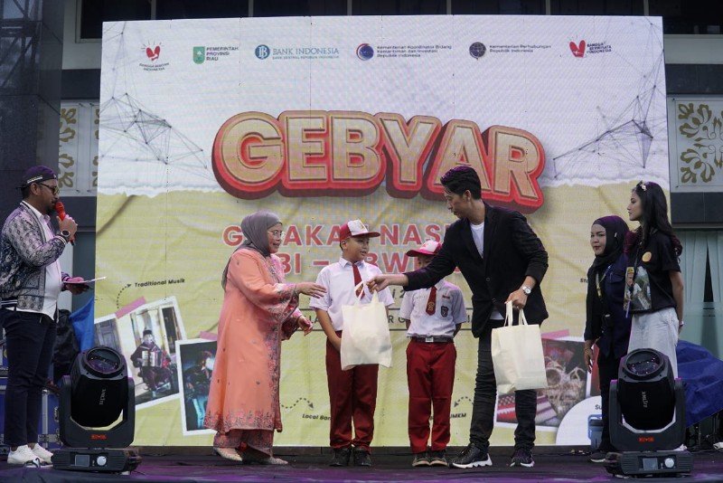 Penyerahan makanan sehat+susu serta paket makanan produk UMKM itu dilakukan Adrias Hariyanto setelah dia memberikan sambutan sebelum membuka bazar, Harvesting Gerakan Nasional (Gernas) Bangga Buatan Indonesia, dan Bangga Berwisata di Indonesia (BBI/BBWI) tahun 2024, di halaman parkir Kantor Gubernur Riau, Jumat (03/05/2024).