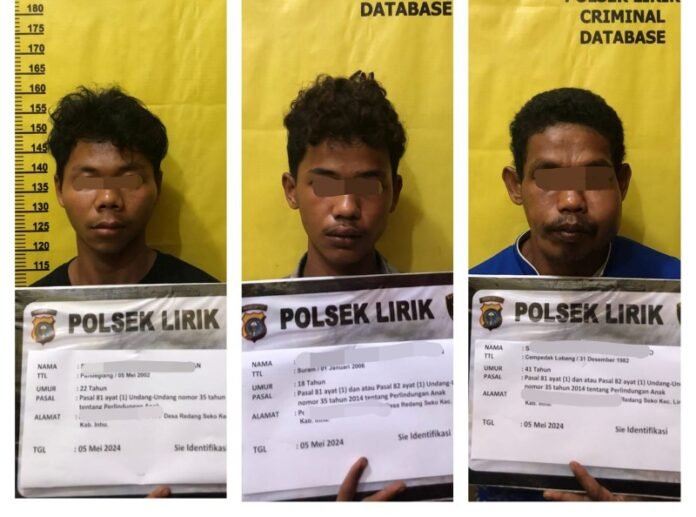 Ketiga tersangka adalah, RH (18) warga salah satu komplek perumahan perkebunan kelapa sawit di Kecamatan Lirik, ST (42) dan SM (22) yang juga tinggal satu komplek, diringkus unit Reskrim Polsek Lirik, pada Minggu (05/05/2024) dini hari kemaren, sekitar pukul 00.30 Wib.