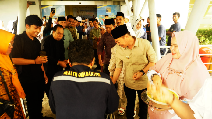 Batam, Nadariau Com – Tepat jam 14.55 Wib sore waktu Batam, calon jemaah haji dari Kabupaten Rokan Hilir tiba di pelabuhan Sekupang, Batam kepulauan Riau. Suasana penuh haru dan gembira terasa ketika masyarakat Rokan Hilir yang berdomisili di Kota Batam berkumpul untuk menyambut kedatangan mereka.