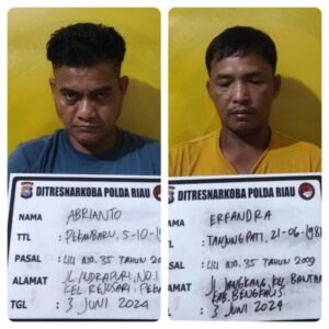 Kali ini, tim yang dipimpin Kasubdit I, AKBP Boby Putra Ramadhan Sebayang ini berhasil meringkus 2 pengedar sabu di Jalan Indrapuri 1, Kelurahan Rejosari, Kecamatan Tenayan Raya Kota Pekanbaru, pada Senin (03/06/2024) petang kemaren, sekitar pukul 17.00 Wib.
