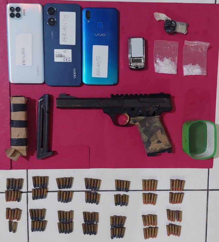 “Tim juga menemukan barang bukti lainnya serta satu pucuk senjata api beserta amunisi di dalam rumah tersangka inisial ER yang terletak di atas meja,” jelas Kombes Manang.