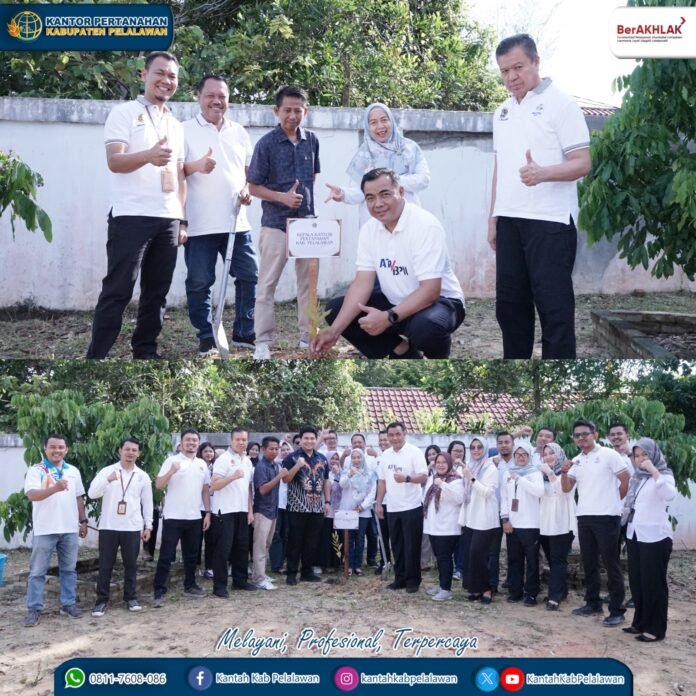 Setelah dilaksanakan tepusat oleh Menteri ATR/Kepala BPN melalui Zoom Meeting dilanjutkan dengan Kepala Kantor Pertanahan Kabupaten Pelalawan Turmudi, S.SiT.,M.H melaksanakan penanaman pohon bersama dengan Perwakilan PT. RAPP didampingi Pejabat Pengawas dan Jajaran Kantor Pertanahan Kabupaten Pelalawan di halaman Kantor.