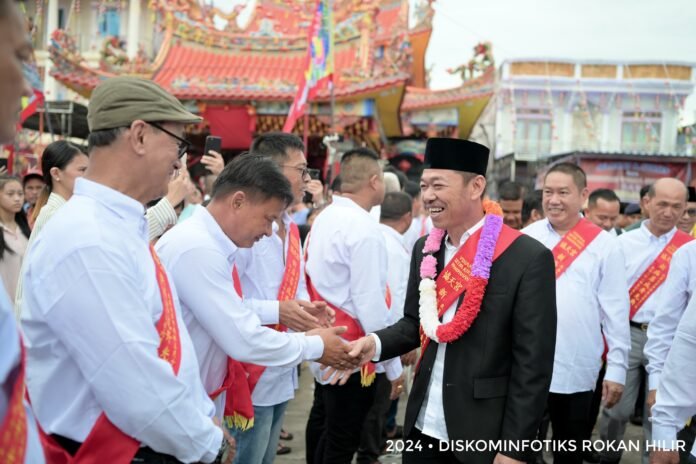 Dari pelabuhan dengan diiringi barongsai, Bupati Rohil berjalan kaki menuju Vihara Setya Kirty. Semua warga tampak sudah berdiri disepanjang jalan untuk melihat langsung kedatangan Bupati. Tampak Bupati pun melambaikan tangannya ke setiap warga.