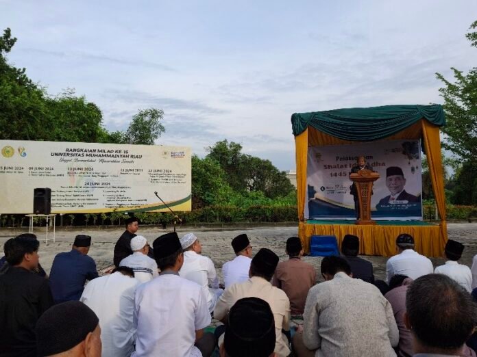 Pekanbaru (Nadariau.com) – Warga Muhammadiyah melaksanakan Solat Idul Adha di Halaman Kampus Utama Universitas Muhammadiyah Riau (UMRI), Jalan Tuanku Tambusai, Pekanbaru, pada Senin (17/6/2024) Pukul 07.15 Wib.