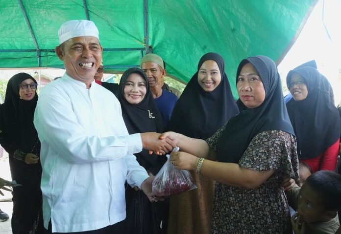 Pj Bupati Inhil Bagikan Daging Qurban Idul Adha 1445 H di Desa Tanjung Lajau Kecamatan Kuindra