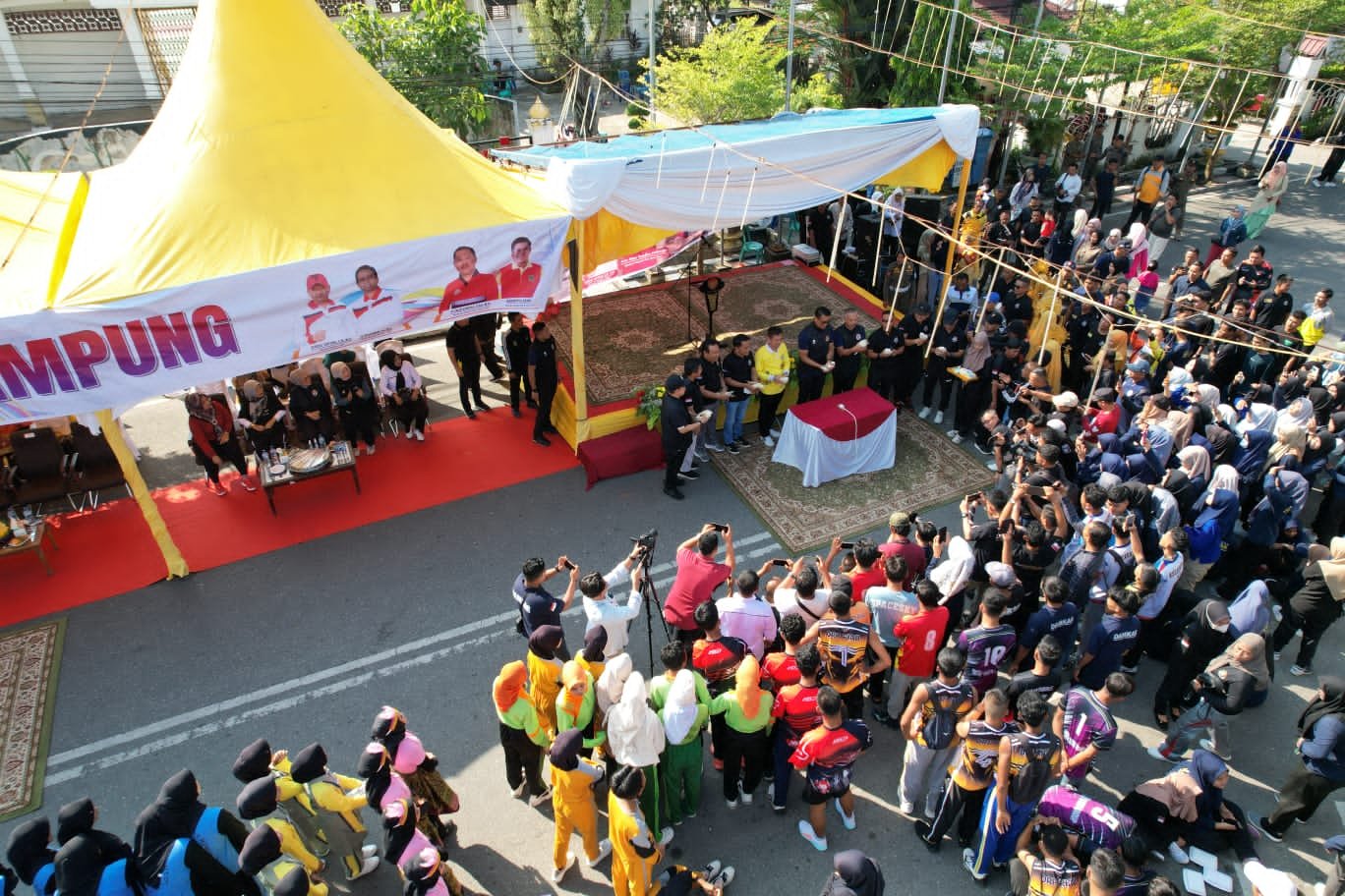 Rokan Hilir, Nadariau Com – Kejuaraan Antar Kampung (Tarkam) yang diselenggarakan oleh Kemenpora dibuka secara simbolis ditandai dengan penekanan sirine dan pelepasan burung merpati serta atraksi Drum Band dari SDN 006. Dalam pembukaan tersebut, juga dilakukan penyerahan bantuan secara simbolis kepada Bupati Rokan Hilir, Afrizal Sintong yang diserahkan oleh Deputi Bidang Pembudayaan Olahraga Kemenpora Komjen Pol (Purn) Drs Rudy Sufahriadi.