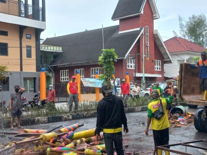 Rokan Hilir, Nadariau Com – Dalam rangka mendukung dan mensukseskan perayaan ivent nasional ritual bakar tongkang, Kepala Dinas lingkungan hidup (DLH) Kabupaten Rokan Hilir, Suwandi S,Sos turun langsung membersihkan bekas kayu dufa dan debu yang sudah terbakar dijalan Aman, Bagansiapiapi, Kecamatan Bangko, Sabtu (22/6/2024).
