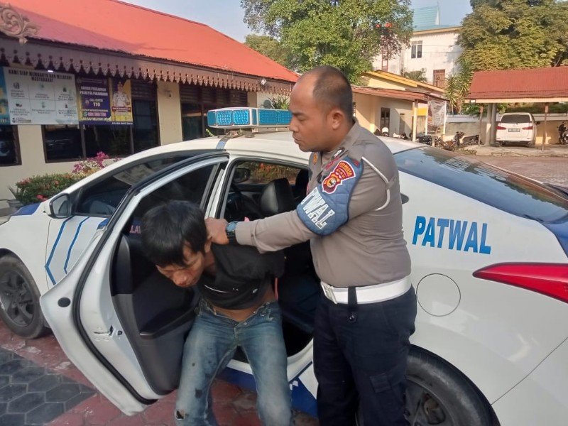 “Melihat kejadian tersebut petugas lalu lintas dengan sigap mengamankan pelaku. Pelaku sempat melakukan perlawanan, namun petugas tetap berhasil mengamankannya dan dibawa ke Polsek Bukit Raya,” ujarnya.