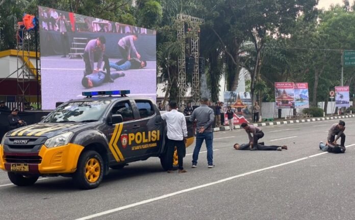Pekanbaru (Nadariau.com) – Polda Riau bersama Polresta Pekanbaru melaksanakan simulasi Sistem Pengamanan Kota (Sispamko) di Jalan Gajahmada Pekanbaru, Rabu (17/07/2024) pagi.