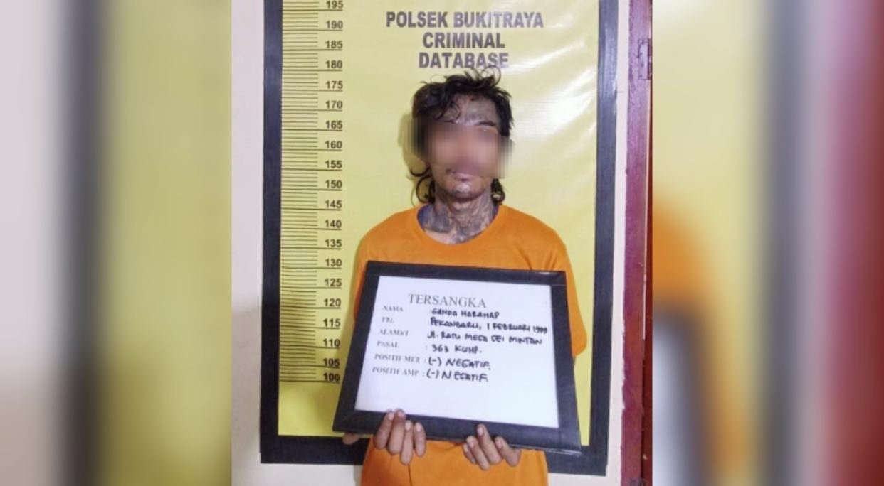 Pekanbaru (Nadariau.com) – Seorang pria bertato berinisial GH alias Ganda (25) diringkus Tim Opsnal Polsek Bukit Raya usai melakukan aksi pencurian kendaraan bermotor (curanmor). Pelaku dalam aksinya, berhasil membawa kabur sepeda motor korban yang sedang parkir di halaman rumah.