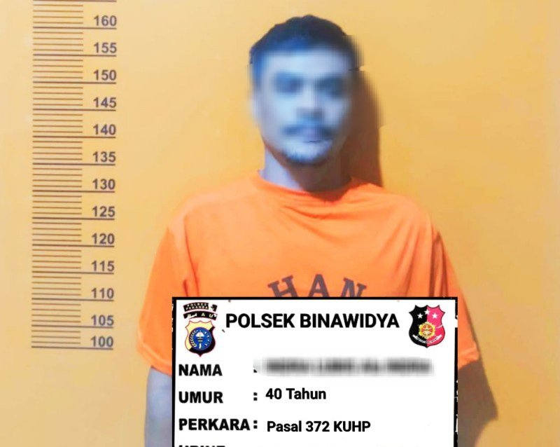 “Atas perbuatannya pelaku kita jerat dengan pasal 372 KUHPidana dengan ancaman hukuman diatas 5 tahun penjara,” tutup Kapolsek.(sony)