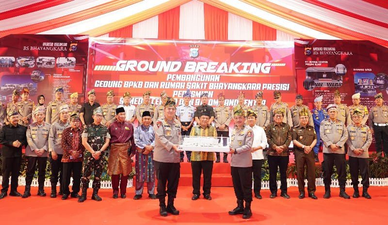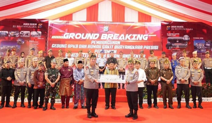 Pekanbaru (Nadariau.com) – Kapolda Riau, Irjen Pol Mohammad Iqbal melakukan peletakan batu pertama (Ground Breaking) Pembangunan Gedung Buku Pemilik Kendaraan Bermotor (BPKB) Polda Riau dan Rumah Sakit (RS) Bhayangkara Presisi Polda Riau, di eks Gedung Mapoda Riau, jalan Sudirman, Pekanbaru, Kamis (01/08/2024) pagi. Dimana Rumah sakit Bhayangkara Presisi Polda Riau tersebut akan dibangun dengan konsep kearifan lokal yaitu berbentuk tanjak atau penutup kepala masyarakat Melayu.