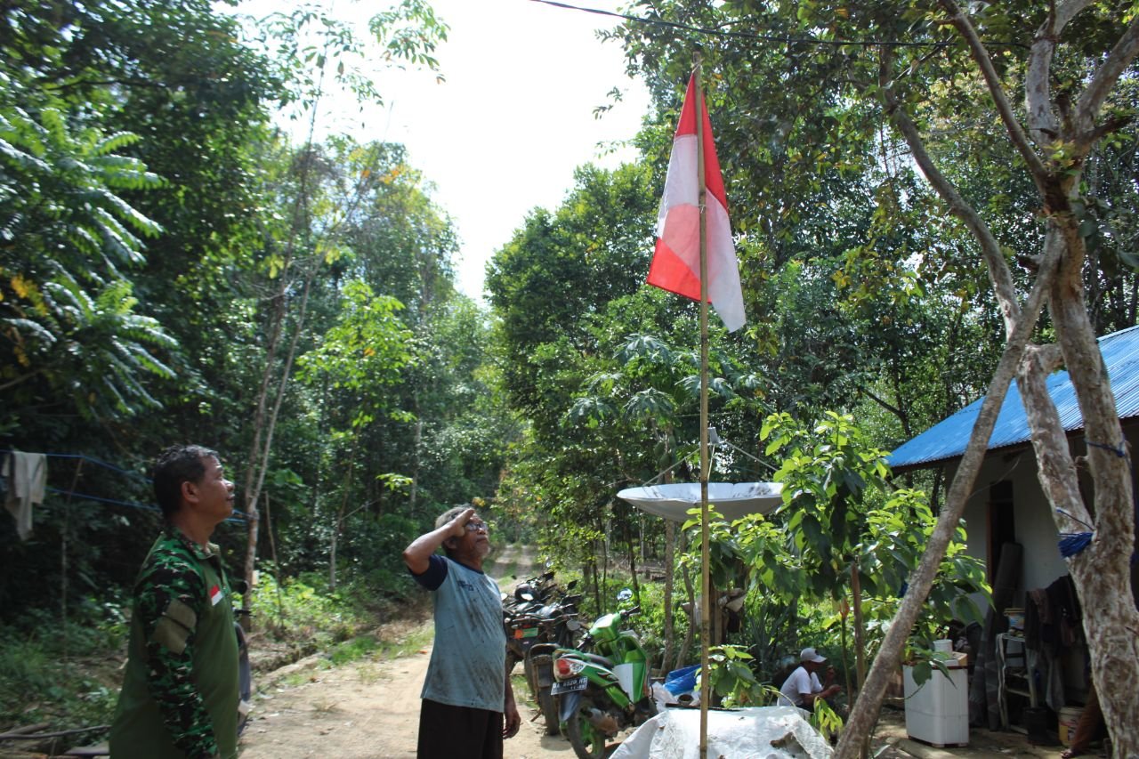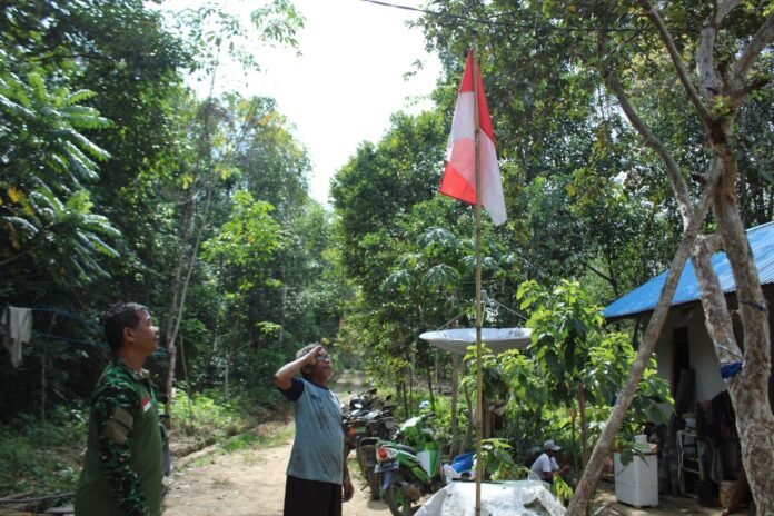 Sebagai bentuk ekspresi cinta tanah air, Serka Samosir Satgas TMMD 121 Kodim 1008/Tabalong mengimbau masyarakat mengibarkan bendera merah putih di depan rumah masing-masing.