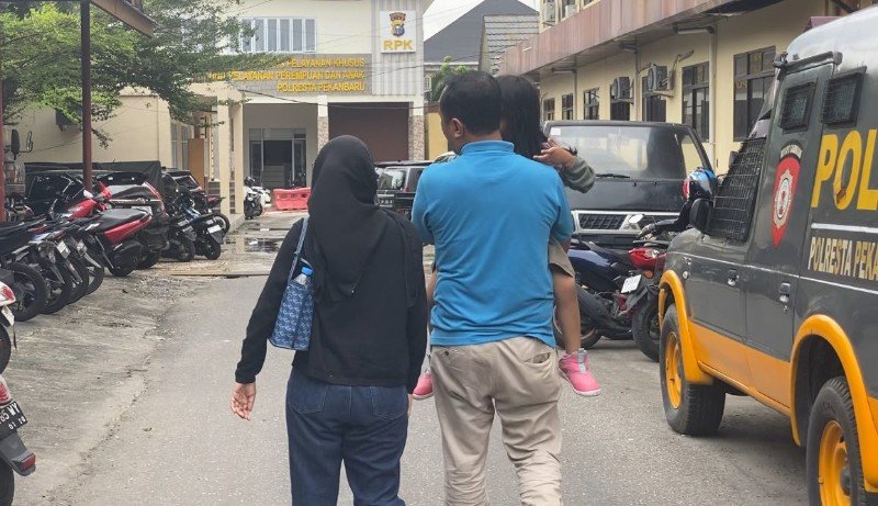 Kedatangan mereka untuk memberikan keterangan terkait laporan dugaan penganiayaan terhadap putrinya di tempat penitipan anak yang berada di Kelurahan Air Dingin, Kecamatan Bukit Raya, Pekanbaru, Riau beberapa waktu lalu.