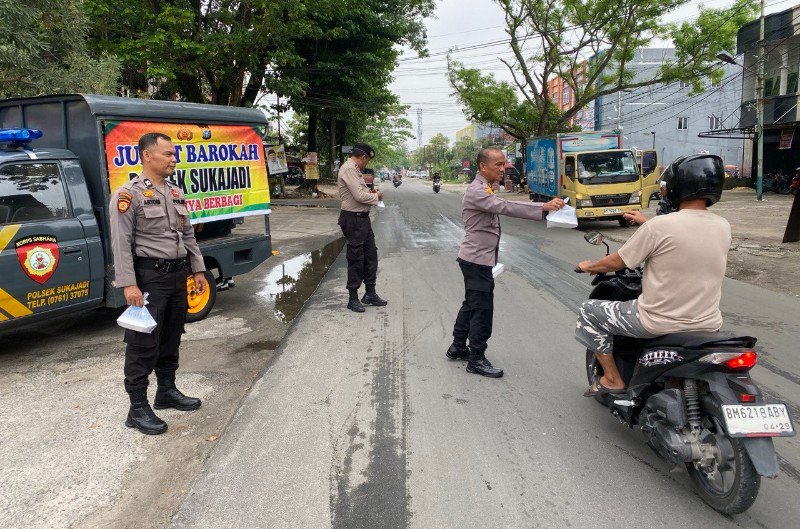 BerandaHeadlineJumat Barokah, Polsek Sukajadi Bagi Makanan Gratis ke Pengendara