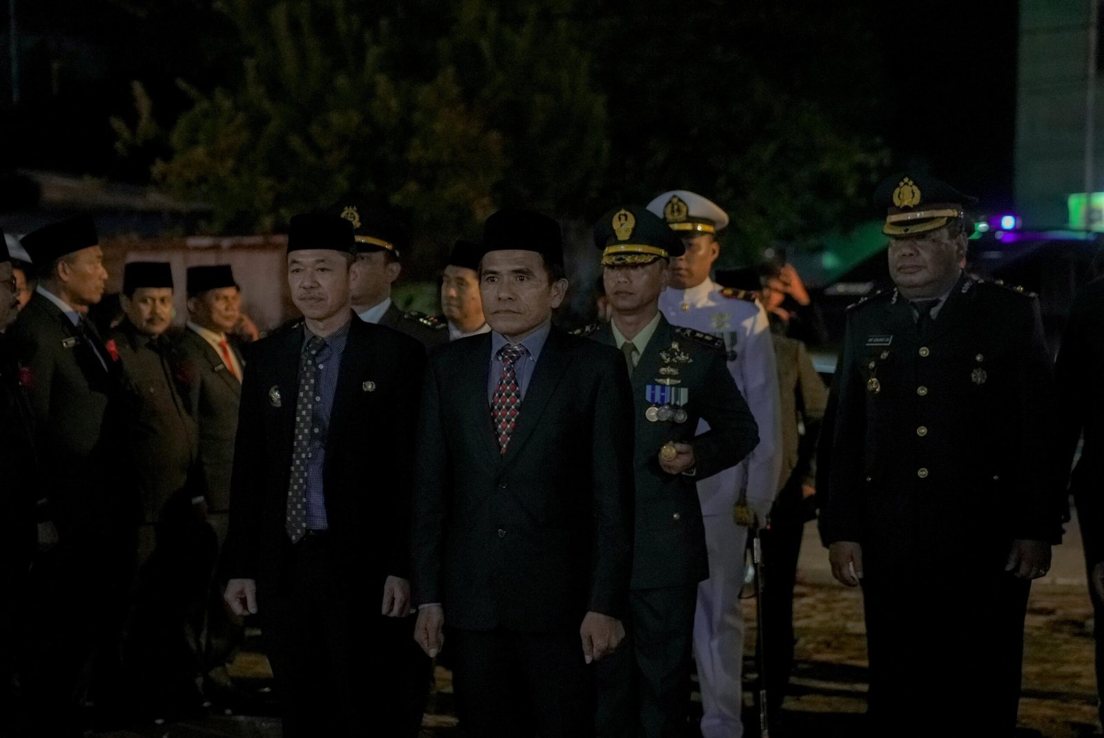 Rokan Hilir, Nadariau Com – Usai menggelar acara pawai obor malam Taptu, Pemerintah Kabupaten Rokan Hilir (Rohil) bersama Forkopimda melaksanakan upacara malam renungan suci di Makam Pahlawan Kusuma Bakti, Jumat (16/8/2024) malam.