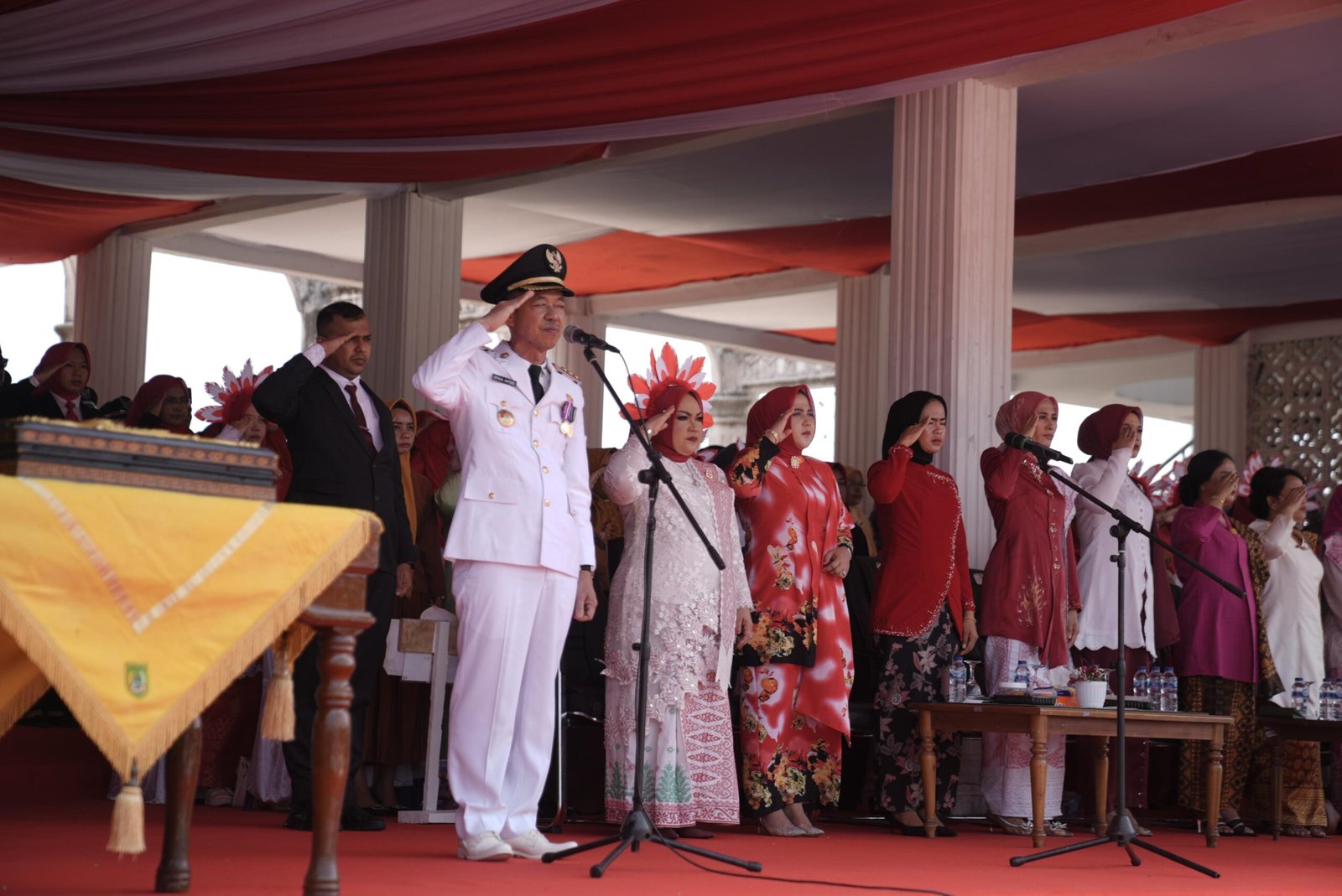Rokan Hilir, Nadariau Com – Bupati Rokan Hilir (Rohil) Afrizal Sintong SIP, M.Si menjadi Inspektur Upacara pada Peringatan HUT Kemerdekaan RI ke-79 yang dilaksanakan di Lapangan Purna MTQ Batu Enam, Bagansiapiapi, Sabtu (17/8/2024).