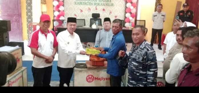 Rokan Hilir, Nadariau Com – Bupati Rokan Hilir (Rohil) Afrizal Sintong, S.IP M.Si menyerahkan bantuan 20 Unit mesin boat kepada dua kelompok nelayan di Kelurahan Sinaboi Kota, Kecamatan Sinaboi, Jumat (16/8/2024) sore.