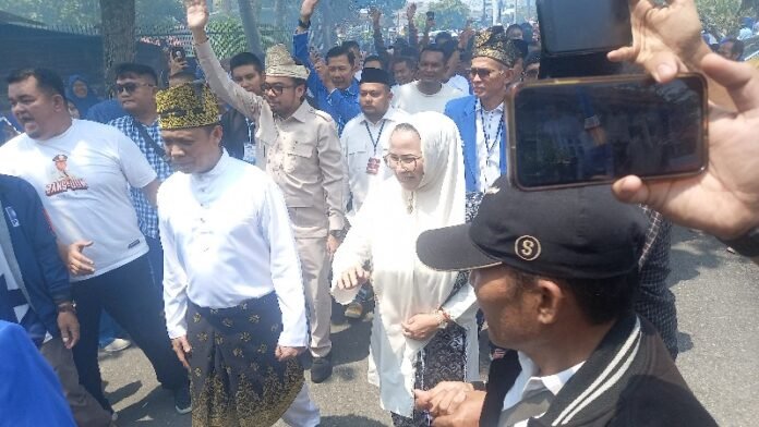 Pekanbaru (Nadariau.com) – Diantar ratusan pendukung dan simpatisannya pasangan Bakal calon (Balon) Walikota dan Wakil Walikota Pekanbaru, Muflihun-Ade Hartati akhirnya mendaftar ke Kantor KPU Kota Pekanbaru, Jalan Parit Indah, Kamis (29/08/2024) siang sekitar pukul 13.15 Wib.