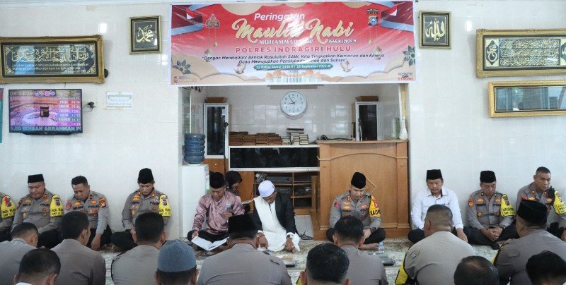 “Menindaklanjuti surat telegram yang dikirim kepada kami, pagi hari ini, Senin (16/09/2024), kami Polres Indragiri Hulu (Inhu) juga melaksanakan peringatan Maulid Nabi Muhammad SAW,” kata Kapolres Inhu AKBP Fahrian Saleh Siregar.