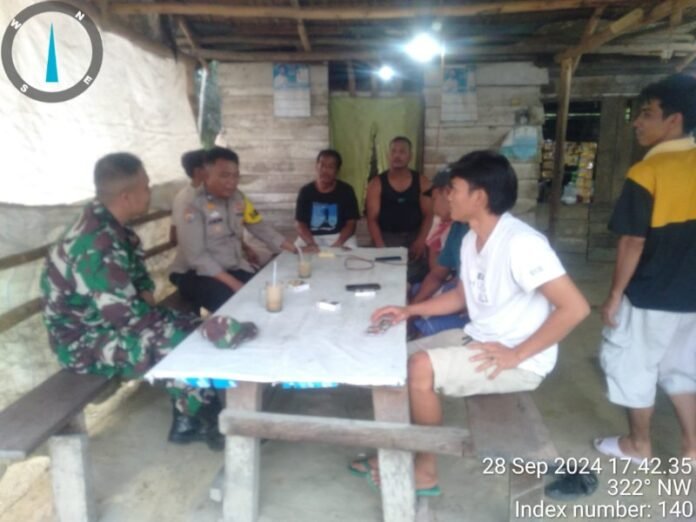 Siak (Nadariau.com) – Dalam upaya menjaga situasi Kamtibmas jelang Pilkada Serentak, Bhabinkamtibmas Kampung Rantau Bertuah, Aiptu Andri Azmi bersama Babinsa, Serda Sugiarto mengelar silaturahmi dan sosialisasi Pilkada damai di Warung Sijef, Jalan Durian, Kampung Rantau Bertuah, Kecamatan Minas, Kabupaten Siak, Sabtu (28/09/2024) petang, sekitar pukul 17.00 Wib.