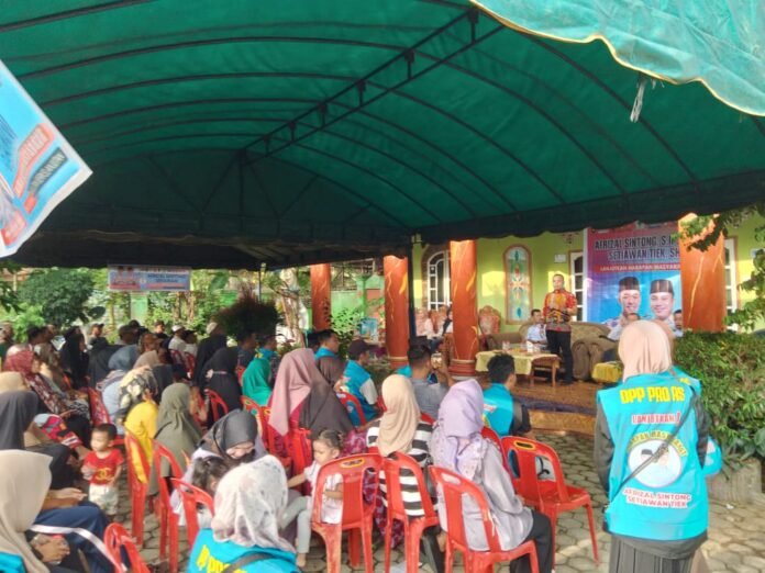 Rokan Hilir, Nadariau Com – Walaupun cuaca hujan tetapi Paslon nomor urut satu (1)) Afrizal Sintong dan Setiawan yang merupakan jargon Asset tetap melaksanakan kampanye dialogis di kediaman Pak Sutat, Jalur 4 Kepenghuluan Gelora Kecamatan Bagan Sinembah Kabupaten Rohil, di kediman Pak Sutar, Jalur 4, Minggu 29/09/2024, Pukul 16.30 Wib.