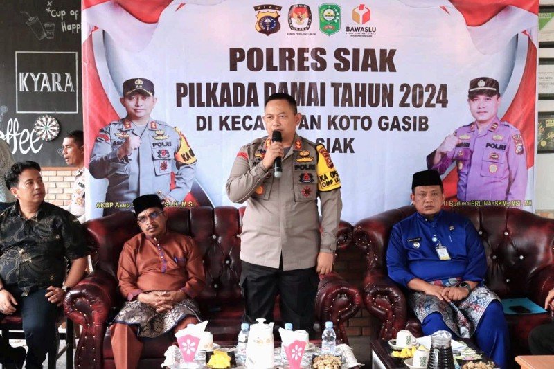 “Dalam pesta demokrasi pemilihan Gubernur dan wakil gubernur serta kepala daerah Bupati Siak dan Wakil Bupati Siak kami mengajak seluruh masyarakat untuk jangan takut datang menuju TPS untuk memberikan hak pilih nya,kami TNI Polri siap mengamankan kita ciptakan Pilkada yang aman,damai dan berintegritas”, terang AKBP Asep