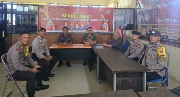 Inhu (Nadariau.com) – Polsek Kuala Cenaku melaksanakan kegiatan sambang dalam rangka mendukung Pilkada Damai Tahun 2024. Kegiatan ini bertempat di Sekretariat PPK Kecamatan Kuala Cenaku, Rabu (09/10/2024) pagi.