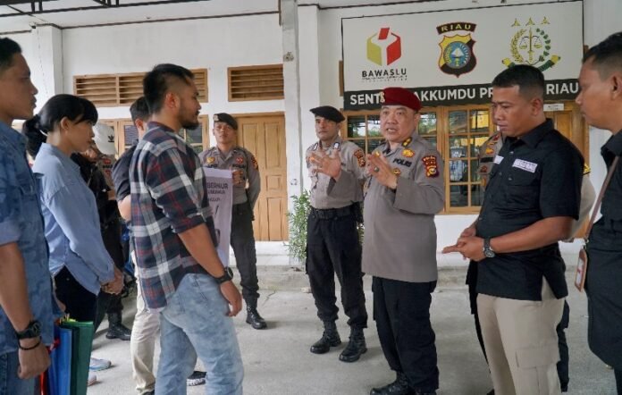 Kegiatan ini dilaksanakan oleh Polda Riau bersama Bawaslu dan Kejaksaan Tinggi yang tergabung di dalam Sentra Gakkumdu Provinsi Riau di kantor Bawaslu Provinsi Riau, Jalan Adi Sucipto, Marpoyan Damai, Kota Pekanbaru (10/10/2024)