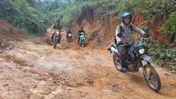 Kali ini, dikemas dalam Operasi Mantap Praja Lancang Kuning Tahun 2024 (OMP-LK24), Kapolsek Iptu Lof Lasri Nosa SH, kadang-kadang harus berjalan Kaki melewati Lumpur Tanah Liat yang kalau tidak hati-hati akan menimbulkan dampak Bahaya lainnya.