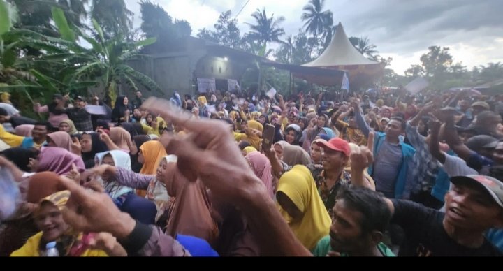 Lantunan yel yel menggema dilontarkan dari pendukung yang tampak seperti lautan manusia tersebut. “Satu dicoblos dua ditutup, satu dicoblos dua ditutup, “teriak masyarakat bersamaan dengan berulang -ulang.