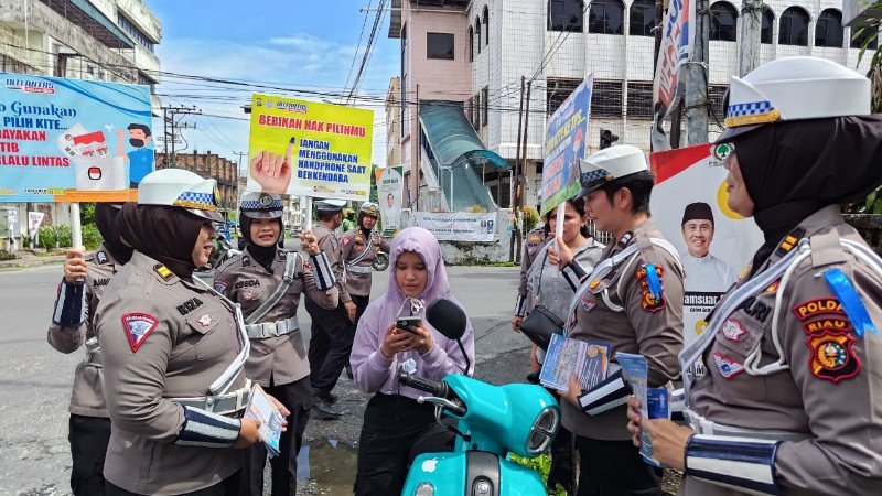 Sementara itu, pantauan di beberapa lokasi kegiatan Kampanye Keselamatan OPS Zebra Lancang Kuning 2024, tanpak Tim Satgas Preemtif yang di pimpin langsung Kasatgas Preemtif AKBP Dasril, S.Pd., M.M, Personel Ditlantas Polda Riau tampak membagikan brosur himbauan, berbagi helm SNI secara gratis serta menyampaikan himbauan tata tertib dalam berlalu lintas hingga menyampaikan ajakan tidak golput dan bijak saat menggunakan media sosial.