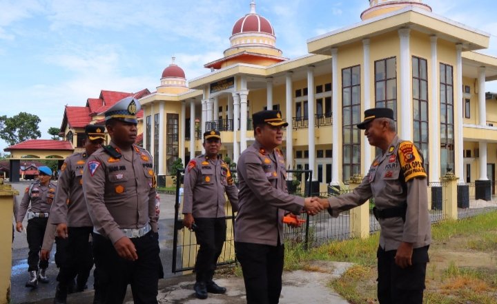 Rokan Hilir, Nadariau Com – Jaga gangguan Kamtibmas yang muncul pada saat Pilkada 2024, Kapolres Rohil AKBP Isa Imam Syahroni, S.I.K M.H perintahkan Kabag Ops Kompol Afrizal, S.H. M.Si, bersama PJU, Perwira dan Personel Polres Rokan Hilir agar melakukan latihan simulasi pengamanan Mako (Sispam Mako) Kamis 17 Oktober 2024 Pukul 08.30 WIB.
