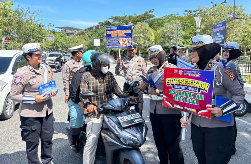 “Kami dari Satgas Preemtif OPS Zebra Lancang Kuning 2024 tidak saja menyampaikan pesan edukasi tata tertib berlalu lintas, namun juga kita ikut mengingatkan masyarakat pada masa pelaksanaan pemilihan Pilkada Riau nanti agar memberikan hak pilihnya, tidak golput, dan tidak mudah terprovokasi dengan informasi yang tidak jelas kebenarannya, mari kita tingkatkan suasana Kamtibmas yang kondusif serta Kamseltibcarlantas yang berkesinambungan,” ujar IPTU Riza.