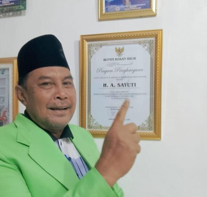 Rokan Hilir, Nadariau Com – Sebagai salah satu tokoh pelopor berdirinya Kabupaten Rokan Hilir tahun 1999, Ahmad Sayuti nyatakan sikap politik mendukung Asset Afrizal Sintong SIP MSi – Setiawan SH. untuk memimpin Rohil.