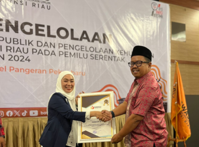 Pekanbaru (Nadariau.com) – Bawaslu Kota Pekanbaru meraih penghargaan membanggakan dengan menempati peringkat ketiga dalam kategori kehumasan pemberitaan terbaik. Penghargaan ini diberikan dalam kegiatan evaluasi pengelolaan pelayanan keterbukaan informasi publik dan pengelolaan kehumasan tingkat kabupaten/kota se-Provinsi Riau, yang digelar di Hotel Pangeran, Pekanbaru, pada Sabtu, 26 Oktober 2024.