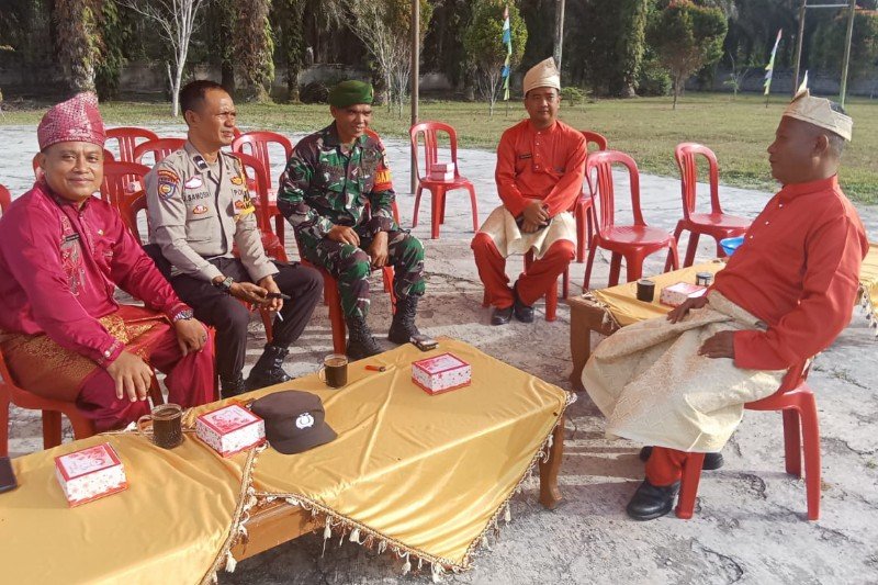 Bhabinkamtibmas Desa Mahato Sakti Aipda J. Samosir, sinergitas dengan Babinsa Serka H Sibarani, laksanakan kegiatan silaturahmi dan berdiskusi dengan Masyarakat Desa Mahato Sakti, Kecamatan Tambusai Utara.