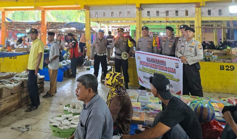 Dengan semangat mendukung demokrasi, Kapolsek Sunaryo menyampaikan ajakan kepada para penjual dan pembeli di pasar untuk menjaga situasi aman dan kondusif menjelang pemilu.