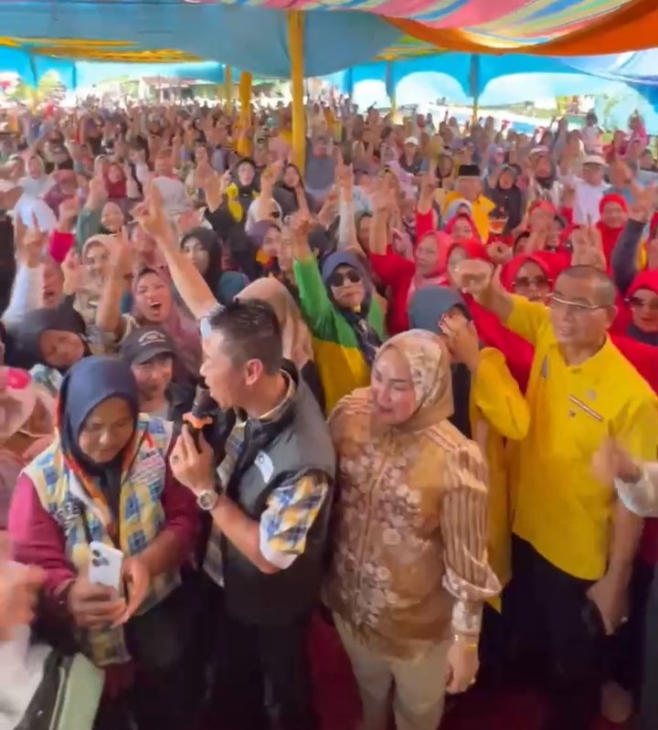 Afrizal Sintong dan Ribuan masyarakat tersebut melakukan yel yel dengan mengangkat tangan satu jari keatas berteriak bersama-sama satu di coblos dua di tutup, satu di coblos dua di tutup.