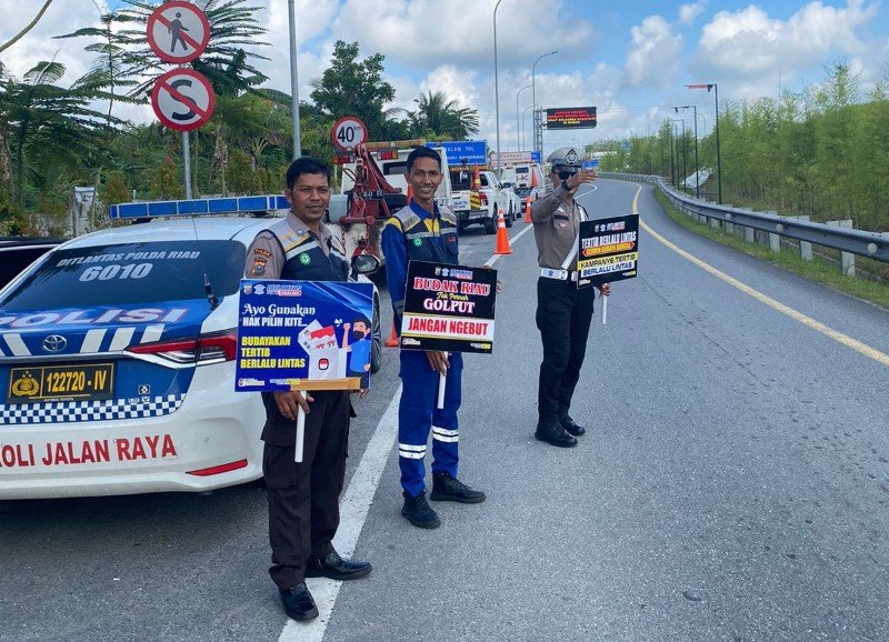 “Kami dari Direktorat Lalu Lintas Polda Riau tidak akan pernah bosan-bosannya menyampaikan himbauan kepada pengendara terutama pengguna Jalan Tol baik di Tol Permai, Pekbang dan XIII Koto Kampar, kita ketahui bersama saat ini dalam masa Pilkada Riau 2024 yang mana aktivitas kendaraan cukup meningkatkan, melalui kegiatan Kampanye Keselamatan yang dilaksanakan Personel SAT PJR Ditlantas Polda Riau kita berharap mampu meningatkan pengendara agar slalu berhati-hati dalam berlalu lintas khususnya di Jalan Tol,” kata Kombes Taufiq.