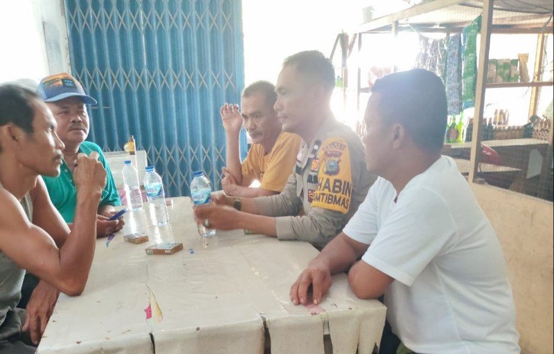 Tampak Bhabinkamtibmas Desa Rantau Sakti, Aipda J Samosir, sambil bercengkrama dan berdialog dengan warga masyarakat Desa Rantau Sakti, Kecamatan Tambusai Utara, penuh dengan keakrapan.