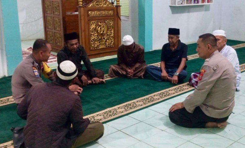 Tampak dalam Coolling System tersebut, personel Polsek Tandun antara Aipda Al Azhar dan Bripka Sukiman sedang bercengkrama juga berdiskusi dengan para jemaah Mushola Al-Ikhlas, di Desa Koto Tandun.